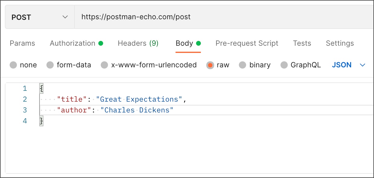 Deberá enviar datos del cuerpo con solicitudes cada vez que necesite agregar o actualizar datos estructurados. Por ejemplo, si está enviando una solicitud para agregar un nuevo cliente a una base de datos, puede incluir los detalles del cliente en JSON. Por lo general usara datos del cuerpo con PUT, POST y PATCH solicitudes.